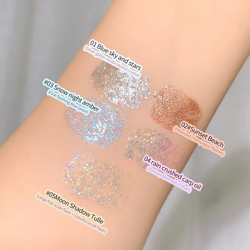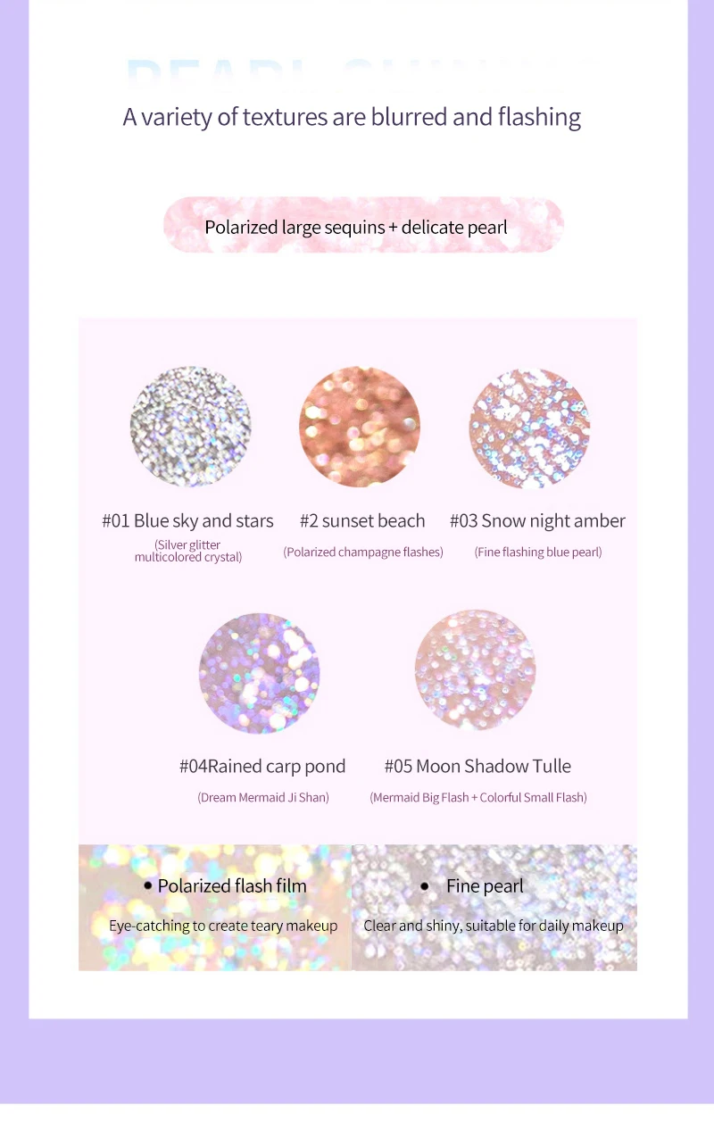 Красивый блеск в 5 цветах, подходит для всех тонов кожи, делая каждый вид красивым.
