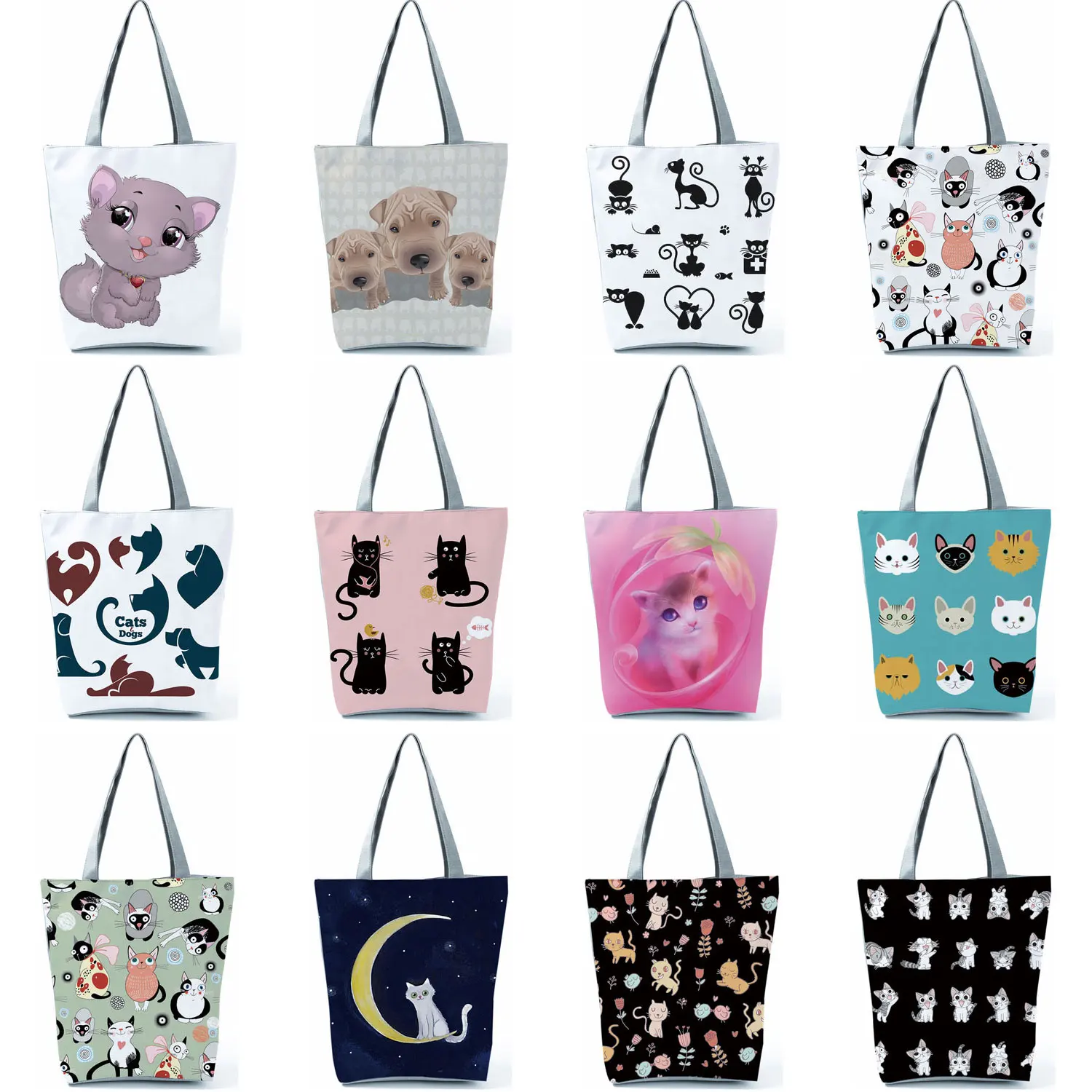 Новая распродажа, милые сумки с принтом кота, сумки-шопперы для женщин, портативная рабочая сумка через плечо, сумка для покупок, складная сумка для путешествий, оптовая продажа