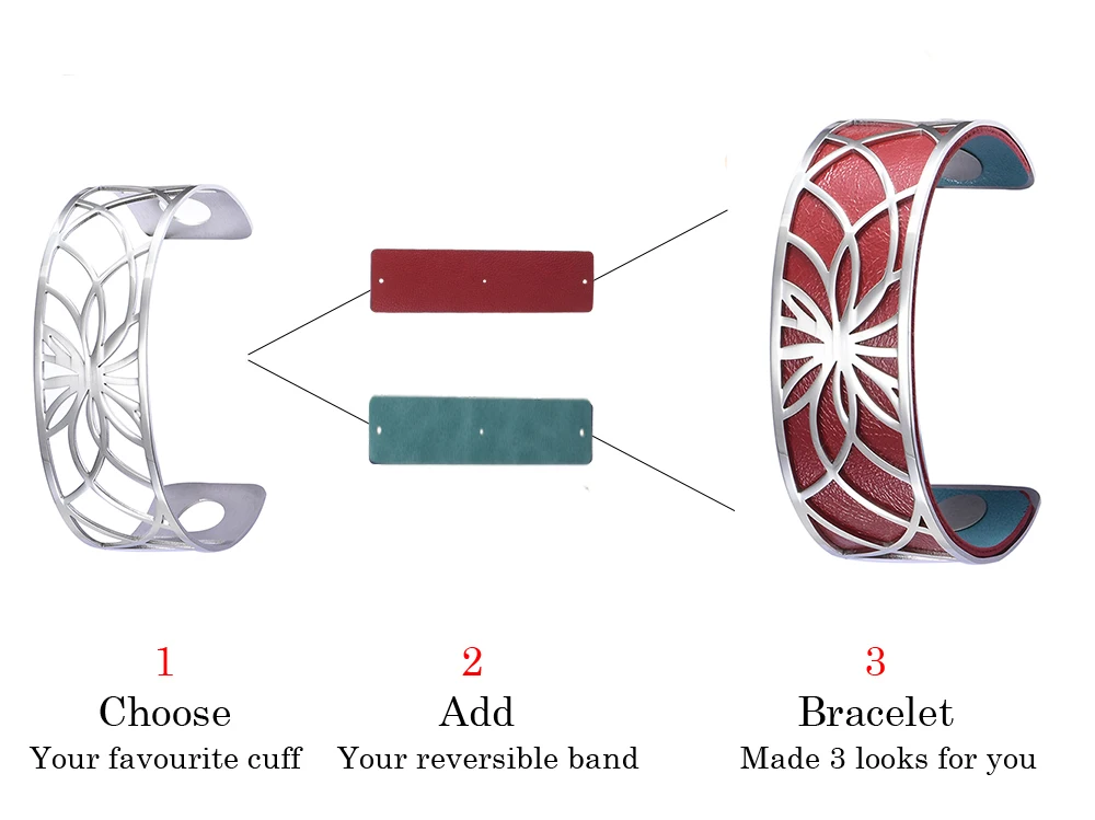 Тип Манжеты: браслет из нержавеющей стали.Материал: нержавеющая сталь + из искусственной кожи.Пол: всех женщин.Емкость: около 25 мм/25 г.Дизайн: двусторонний Браслет-манжета из искусственной кожи DIY.Повод: Свадьба, помолвка, юбилей, вечерние, подарок на день Святого Валентина.Примечание:1. DIY браслет ювелирные изделия, полированный, регулируемый, Реверсивный взаимозаменяемый из искусственной кожи.2. Удобное Сенсорное стекло. Уникальное творчество, один браслет, весь мир.3. Мы стремимся производить высококачественные товары с гламурным, продуманным и креативным дизайном.