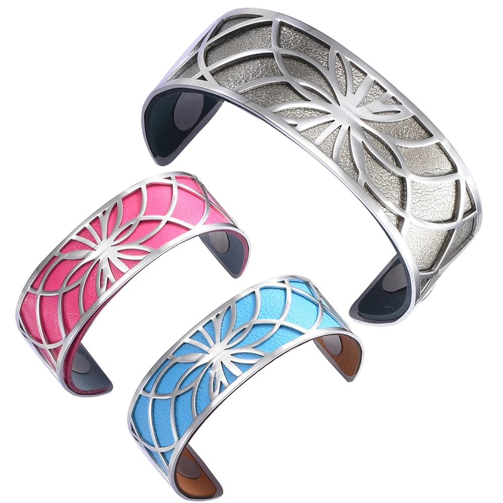 Женский Браслет-манжета из нержавеющей стали, со сменной кожей