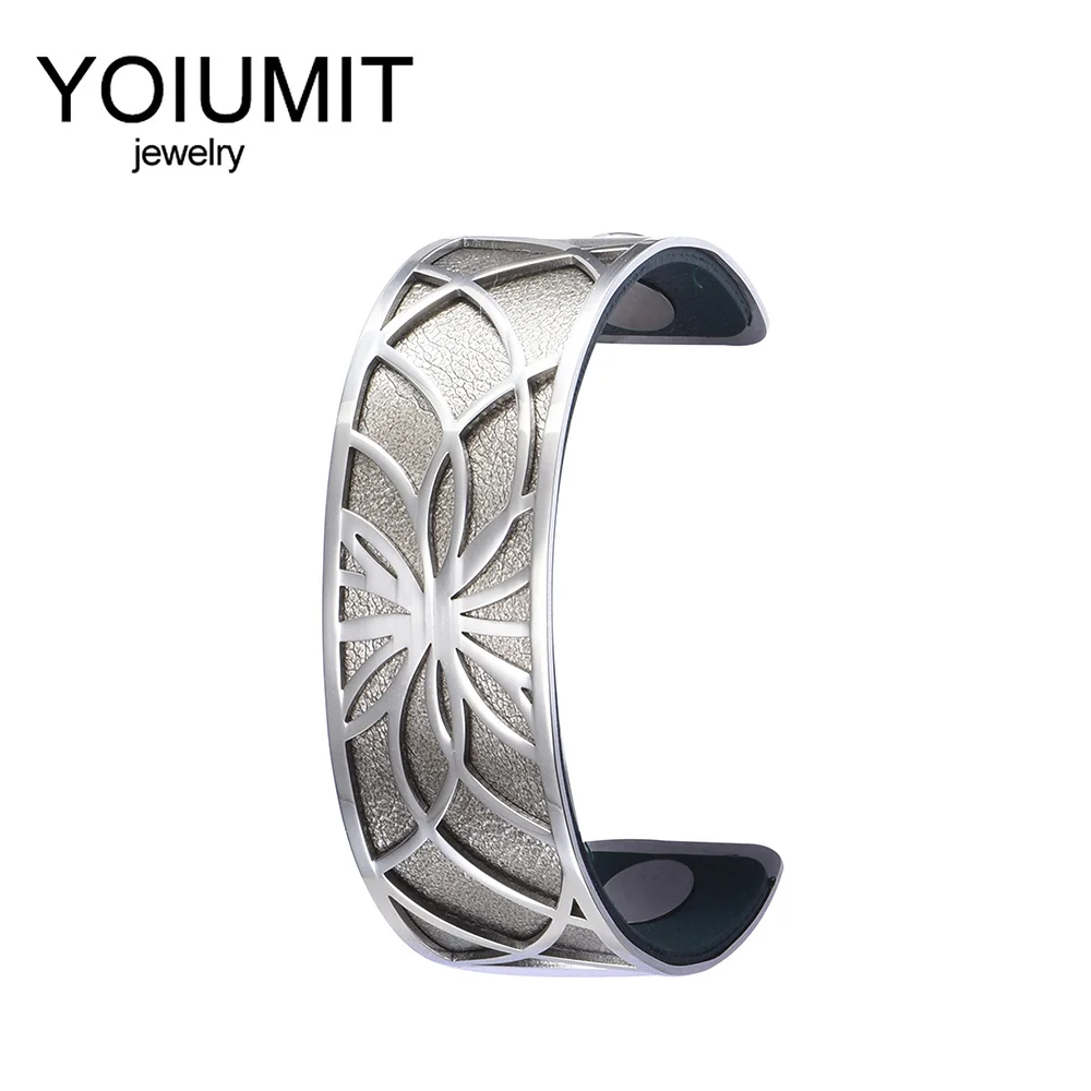 Браслет-манжета из нержавеющей стали Yoiumit серебристого цвета, женские браслеты со сменной кожей, серебристые браслеты для женщин