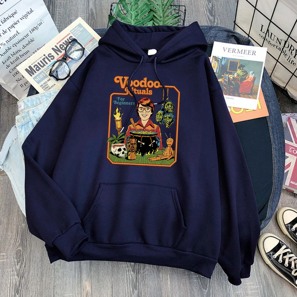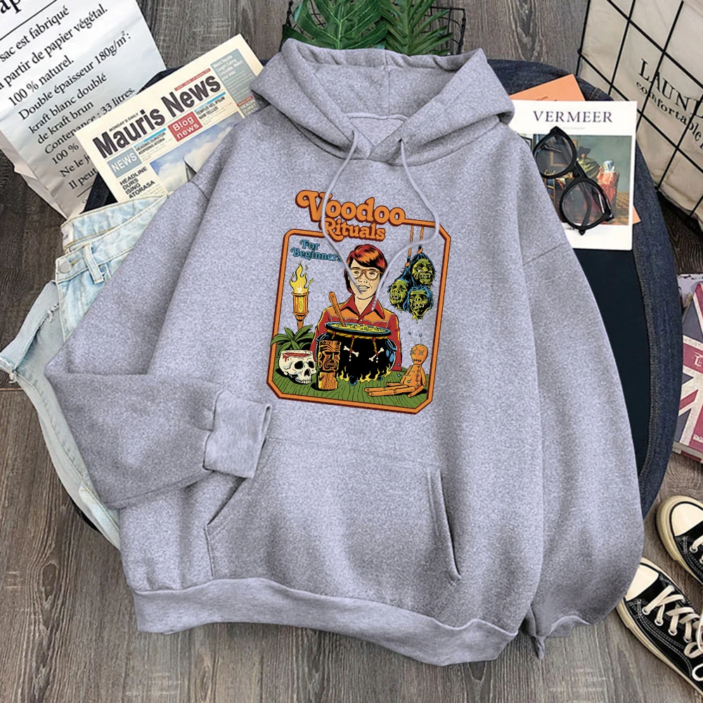 Толстовка мужская с принтом из комиксов ужасов, модные ритуалы Вуду для начинающих, простая свободная толстовка, повседневная хипстерская одежда с круглым вырезом, на осень