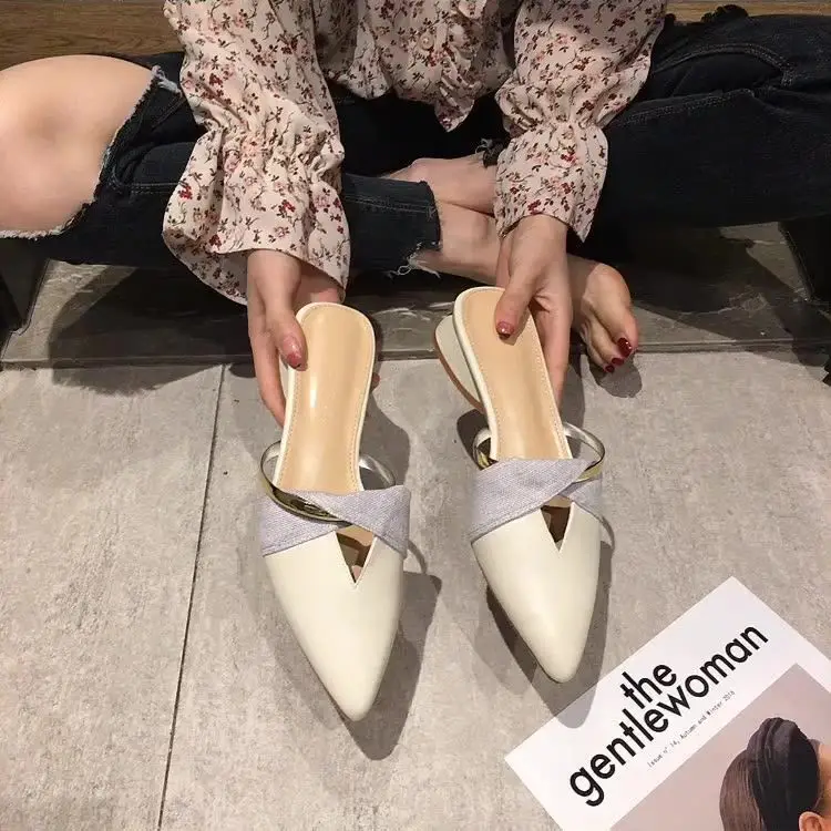 Мюли женские на низком каблуке, элегантные пикантные шлепанцы с ост...