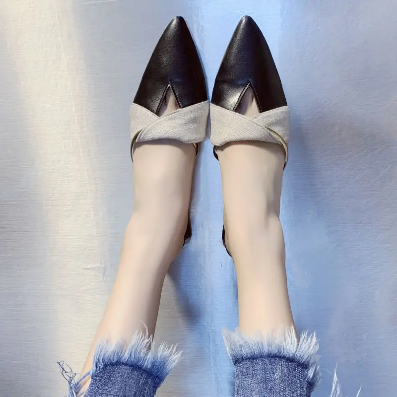 Мюли женские на низком каблуке, элегантные шлепанцы, заостренный но...