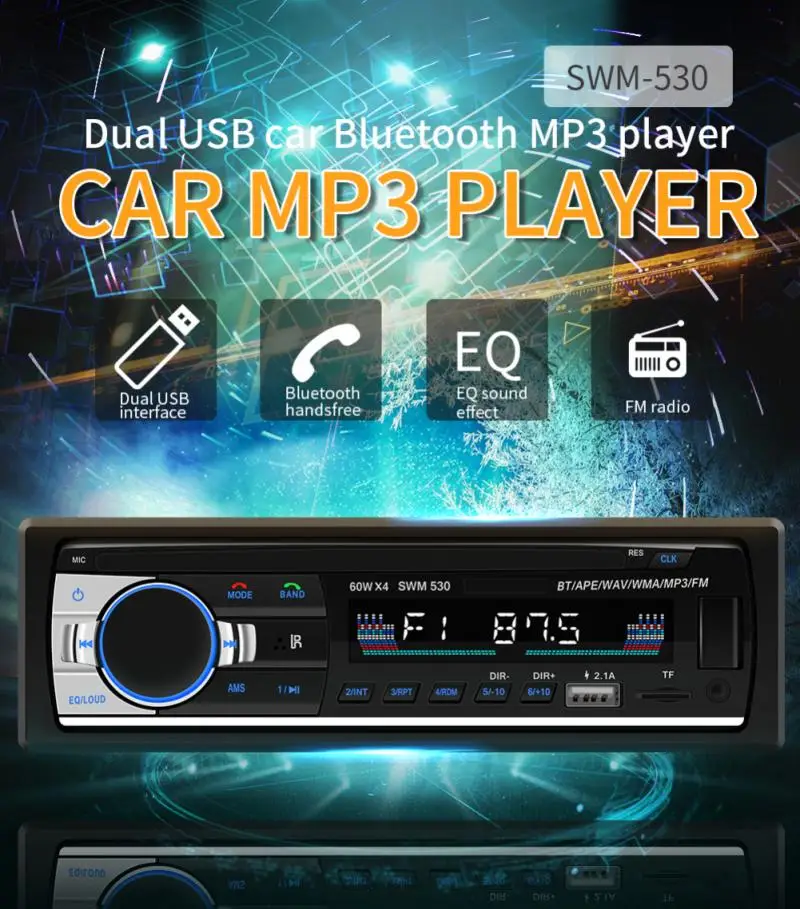 Он имеет функцию звукового эффекта эквалайзера, и вы можете выбрать из популярных/Рок/классических режимов. Он имеет функцию отображения времени, один ключ для переключения отображения времени для контроля в реальном времени. И он имеет функцию отключения памяти, автоматическую память после выключения питания и автоматический круиз.