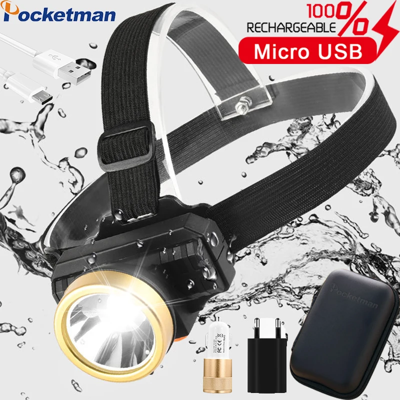 Мощный мощный светодиодный налобный фонарь, Головной фонарь со встр...