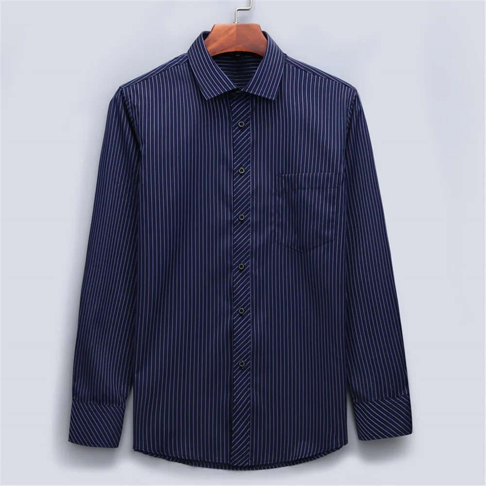 Рубашка мужская деловая с длинным рукавом, Классическая Повседневная Классическая, в полоску, фиолетовая Синяя