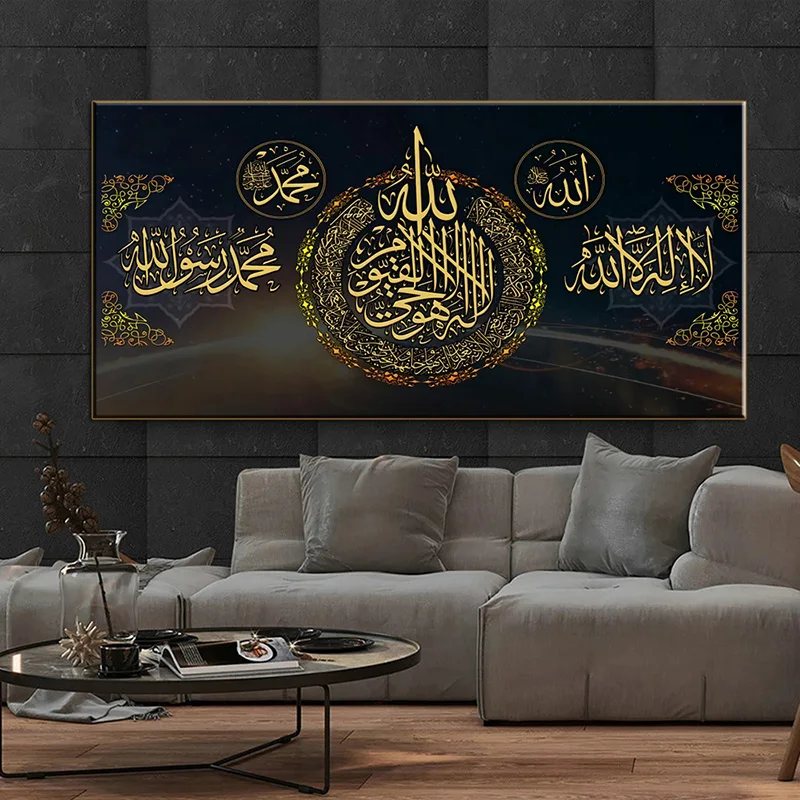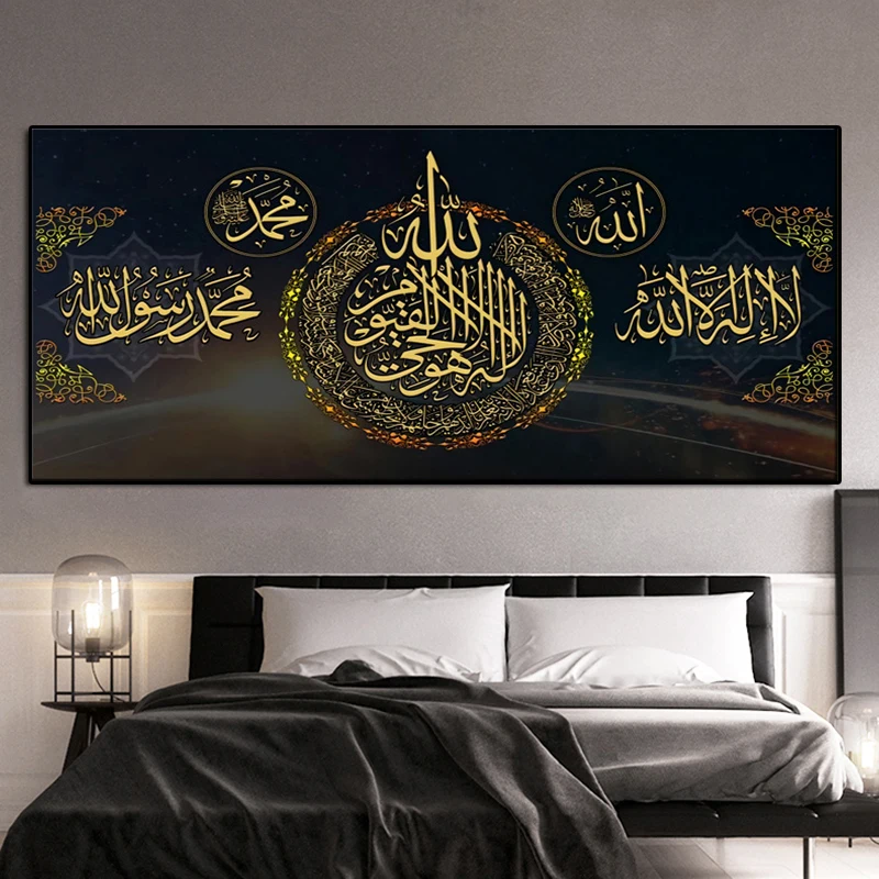 Картина исламский Аллах мусульманская, арабский Коран, холст с каллиграфией, Настенная картина с изображением мечети Рамадана, плакат для дома декоративный