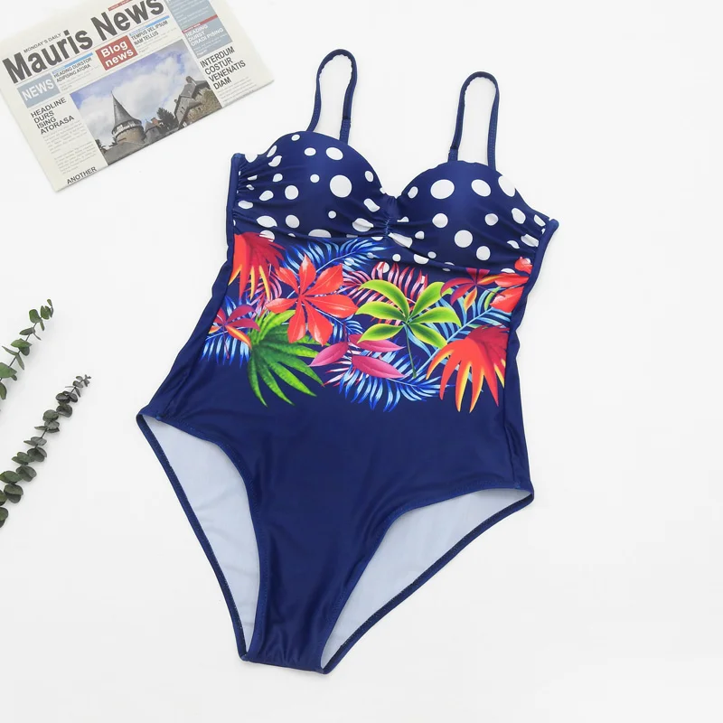 Летние цельные большие купальники в горошек, закрытые женские купал...