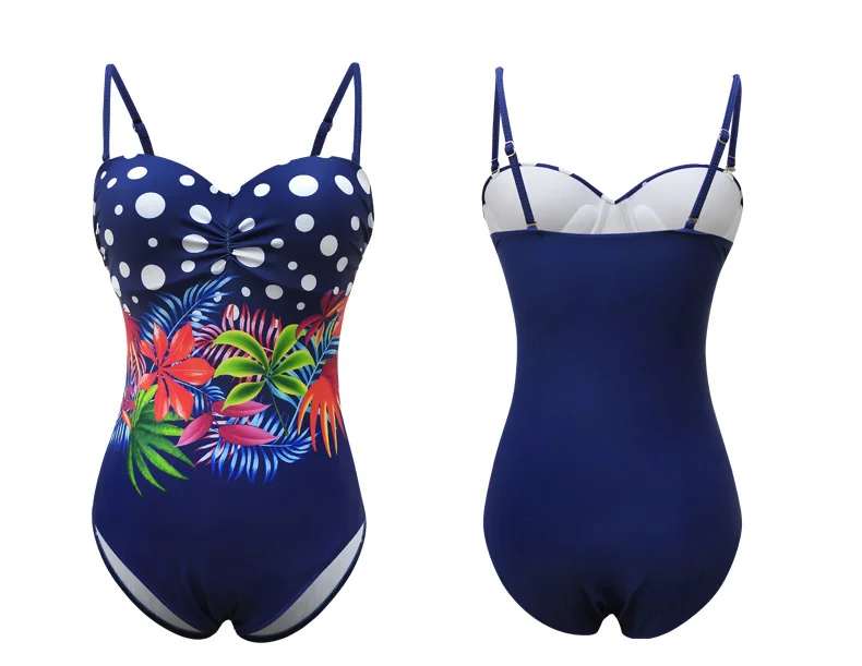 Новый цветочный сексуальный цельный купальник большого размера с пу...