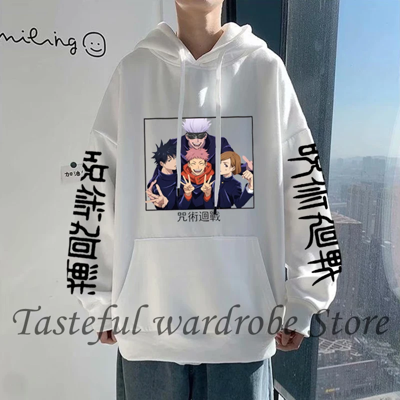 Толстовка с капюшоном в японском стиле Харадзюку, худи с аниме-принтом ююютсу, кайсен, смешная свободная одежда унисекс большого размера с мультяшным принтом, мужская толстовка с капюшоном