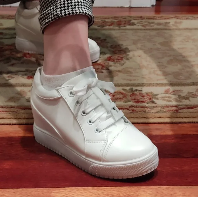 Туфли женские на скрытой танкетке, повседневные кроссовки, высокий каблук, танкетка, черные и белые, лето-осень