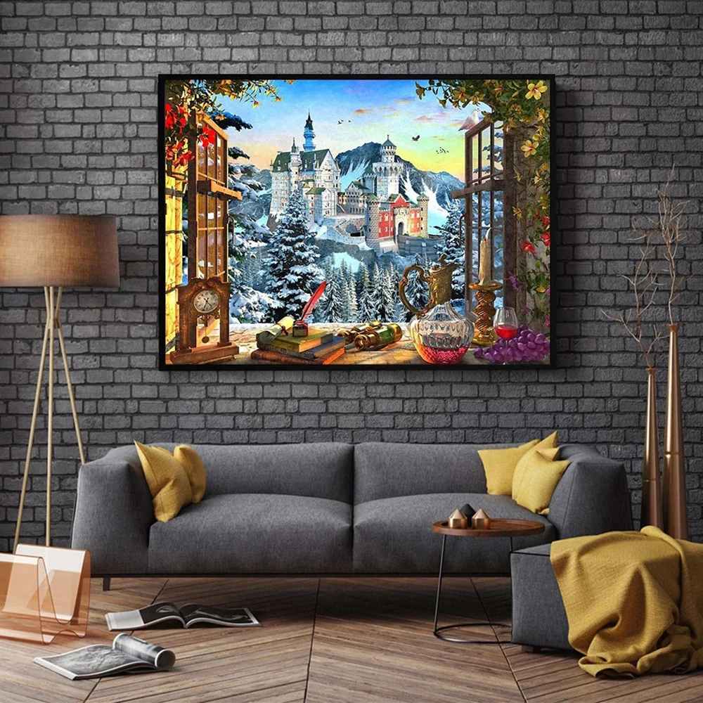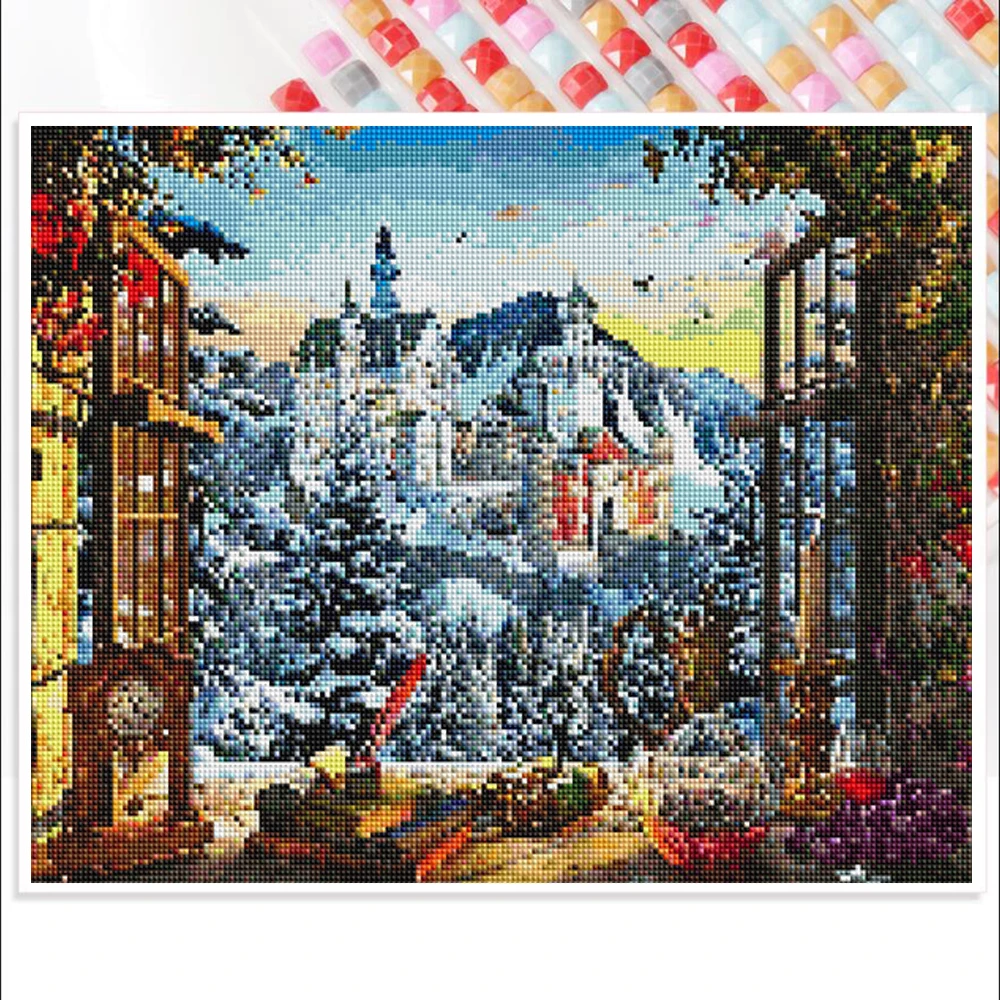 AMY- 5D алмазная вышивка зима новое поступление полный квадратный алмазная живопись замок мозаика Набор окно пейзаж ремесла подарок