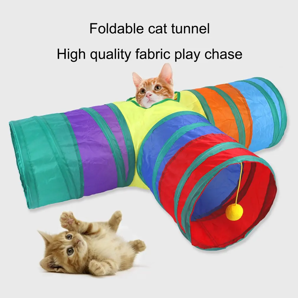 Туннель для кошек, 3 отверстия, складной туннель для кошек, обучающая Интерактивная забавная игрушка для кошек, кроликов, игрушечный туннель для животных