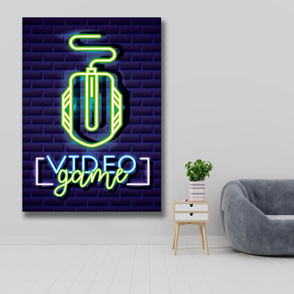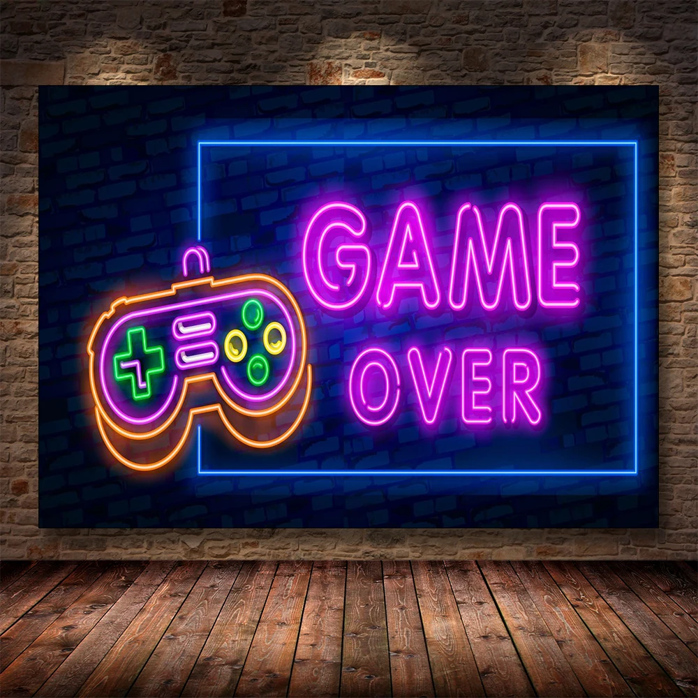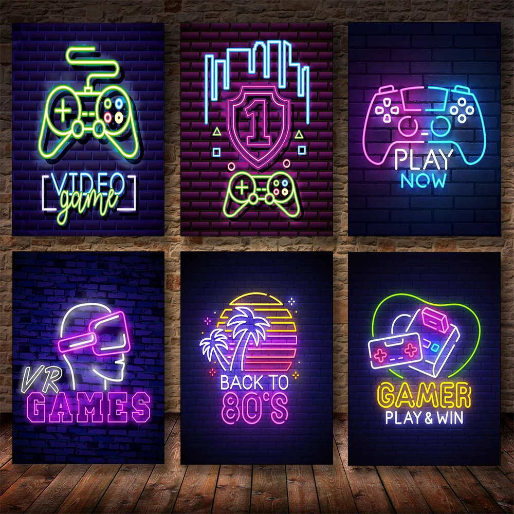 Игровая комната, постер, игра, неоновая Картина на холсте, игра Pla...