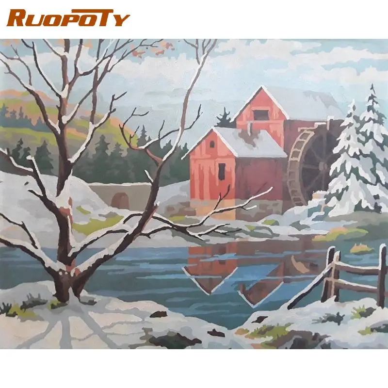 RUOPOTY акриловая рамка Diy Набор для рисования по номерам зимняя стена искусство ручная роспись масляная живопись для дома Декор художественное оформление