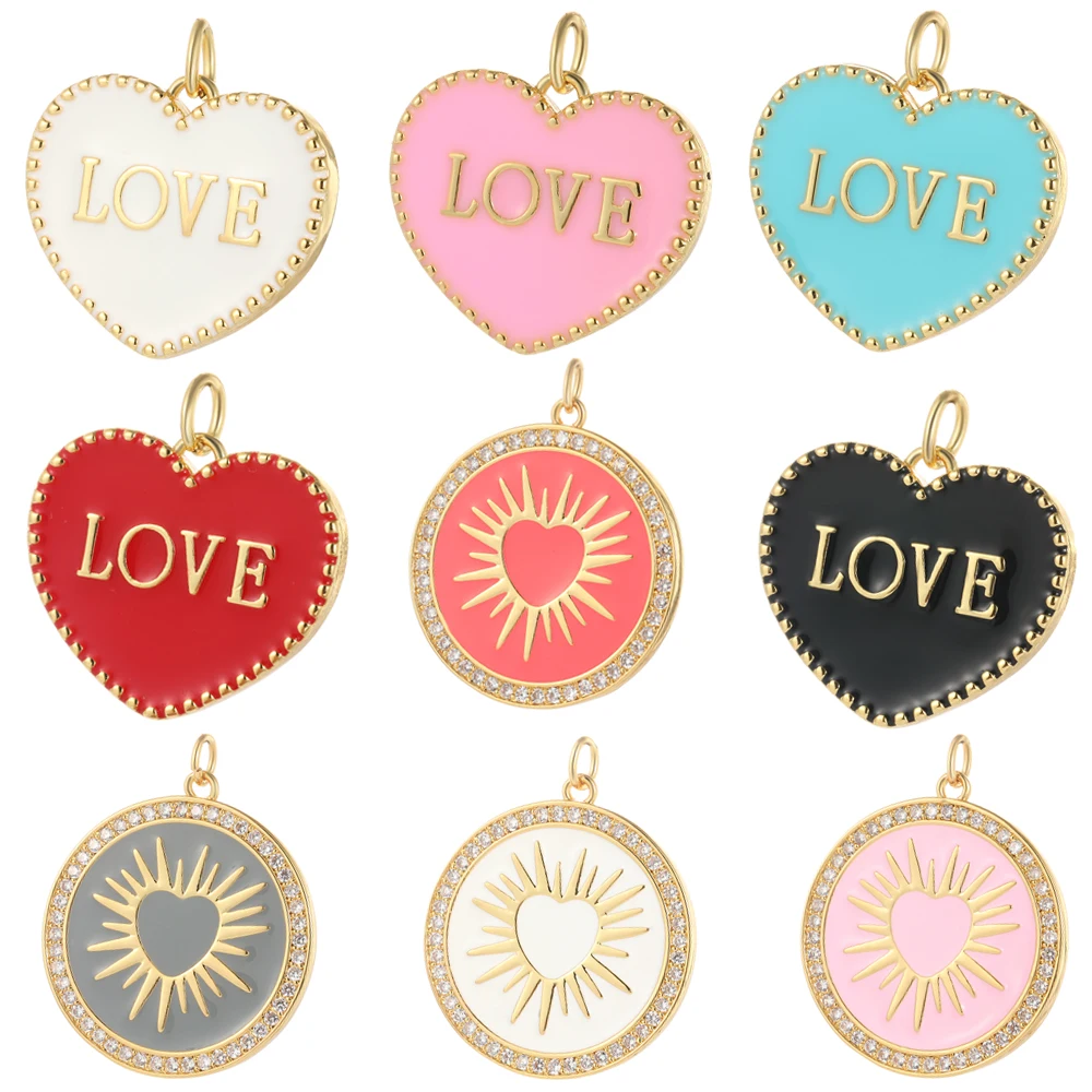 Эмалированные Подвески в виде сердца для изготовления ювелирных изделий, синие, красные, розовые буквы в стиле бохо, подвески сделай сам, серьги, браслет, ожерелье, медь
