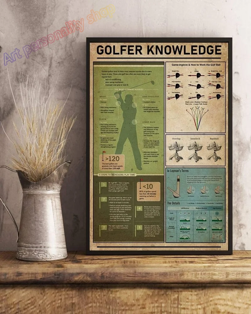 Знания голферов, жестяной знак, игра Inglove, как работать, мяч для гольфа, металлический плакат, спортивный плакат для тренажерного зала, бара, домашний декор, 8x12 дюймов
