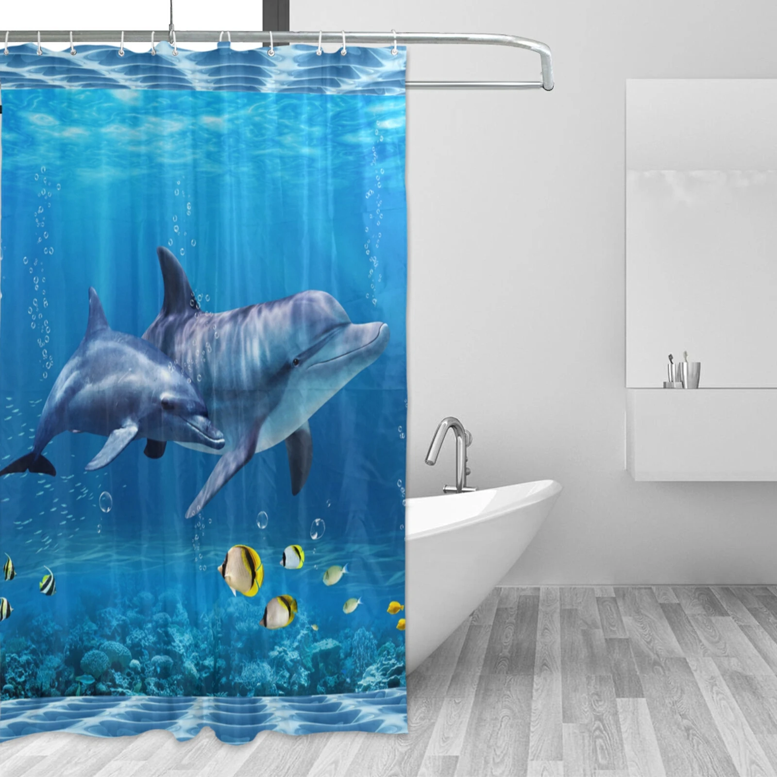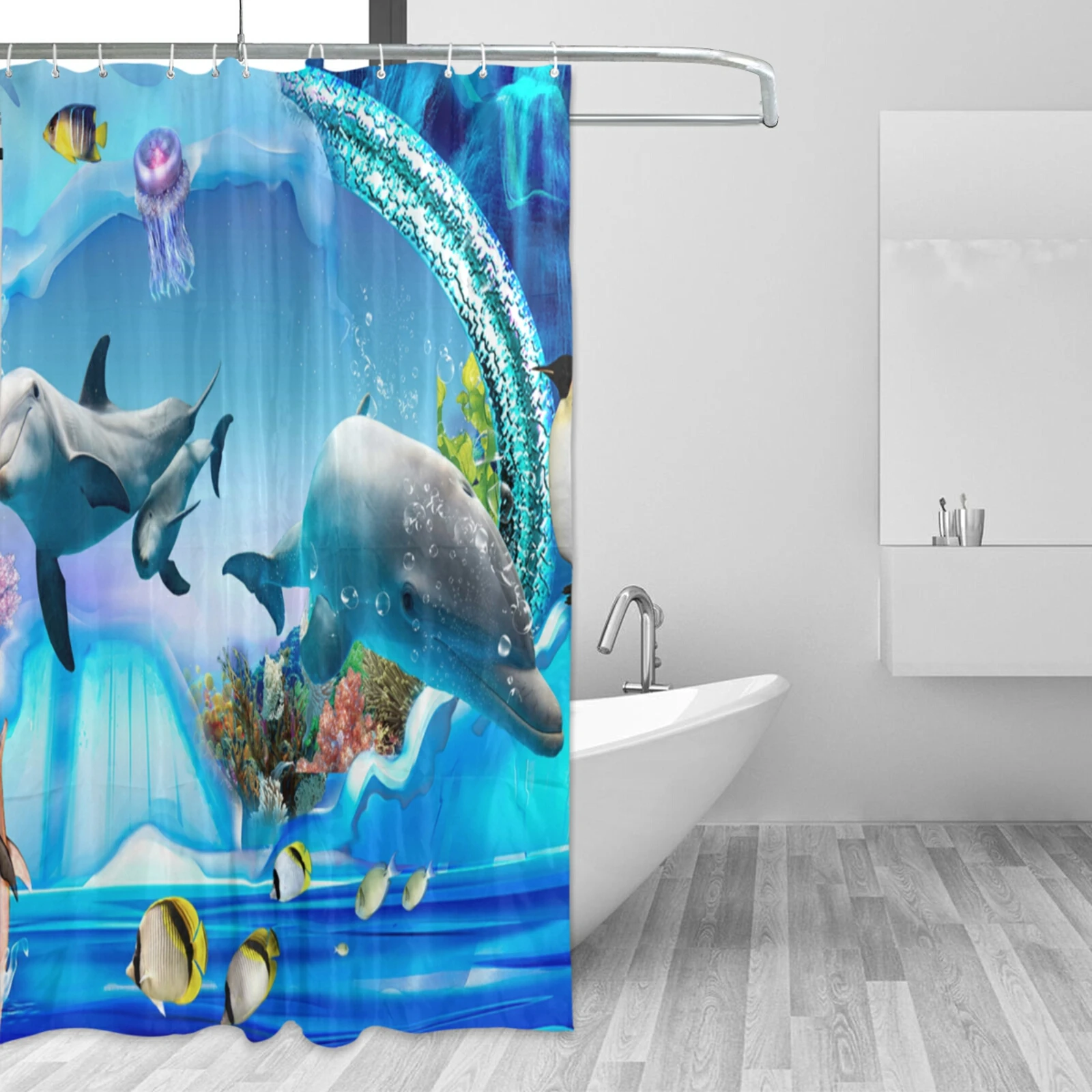 Занавеска для душа с 3d-рисунком дельфина, водонепроницаемая ткань из полиэстера, аксессуары для ванной комнаты, украшение