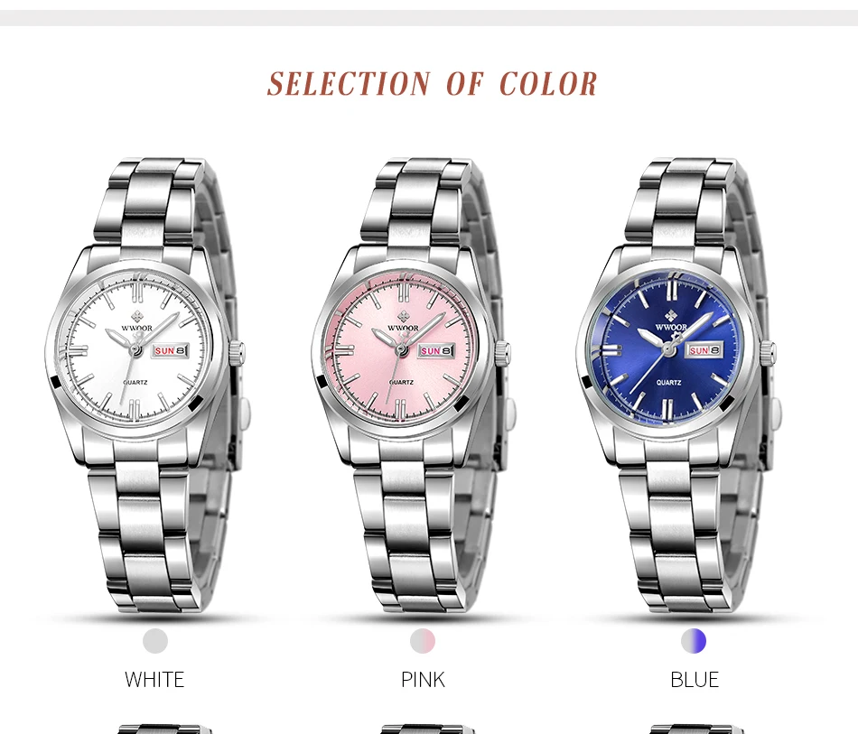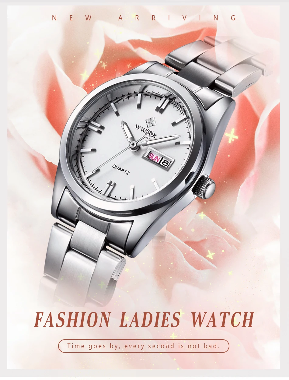 Часы WWOOR женские кварцевые с браслетом из нержавеющей стали