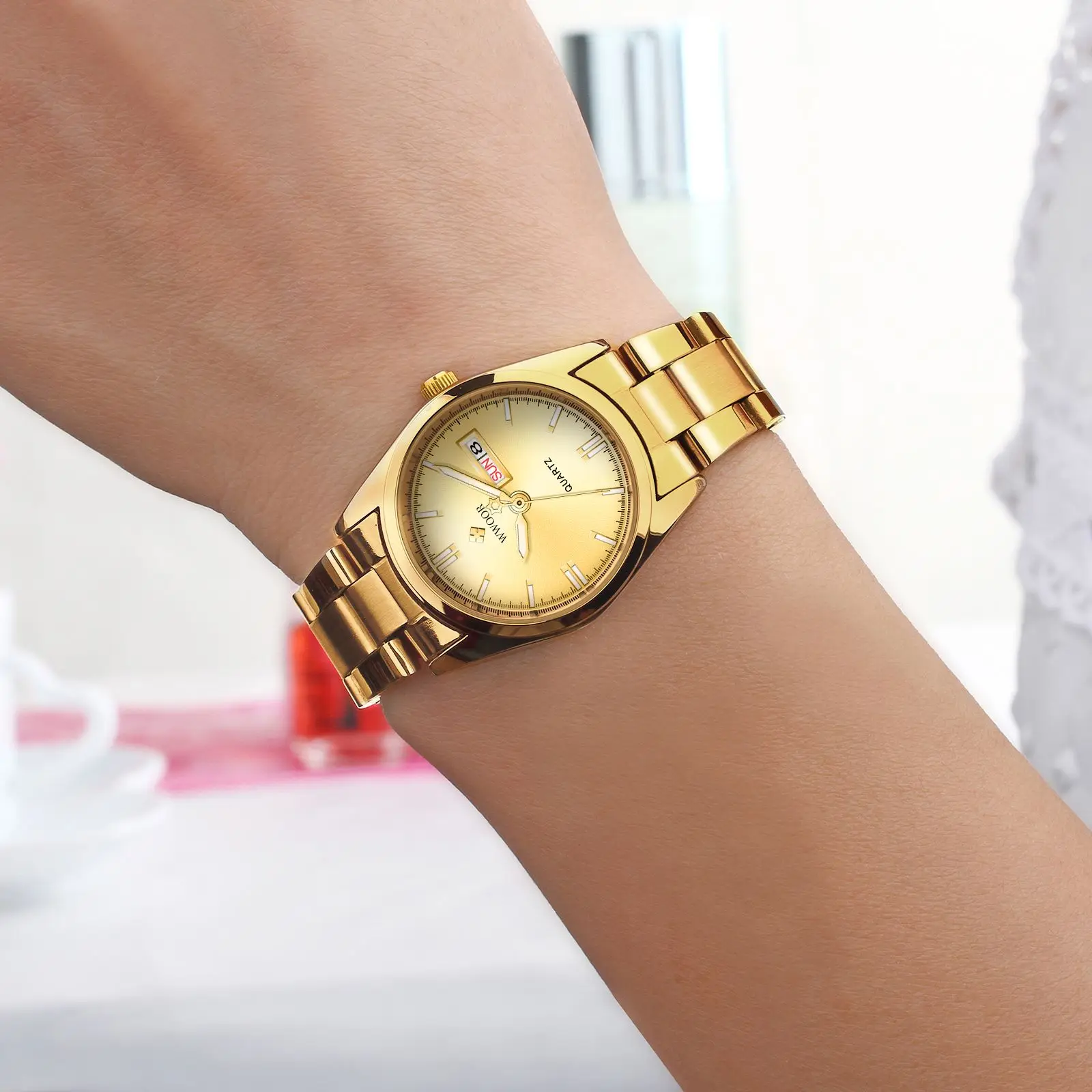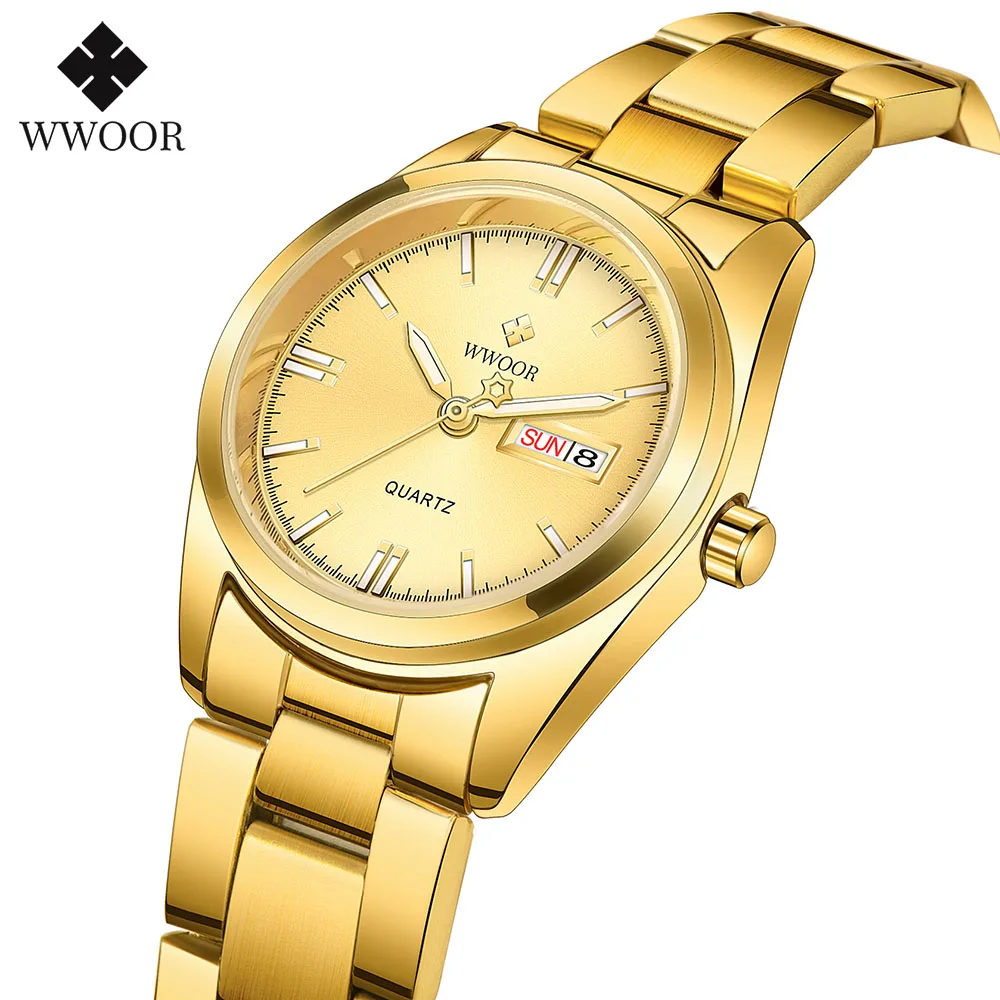 WWOOR 2021 женские золотые новые роскошные Брендовые повседневные модные часы из нержавеющей стали Кварцевые водонепроницаемые наручные часы Relogio Masculino