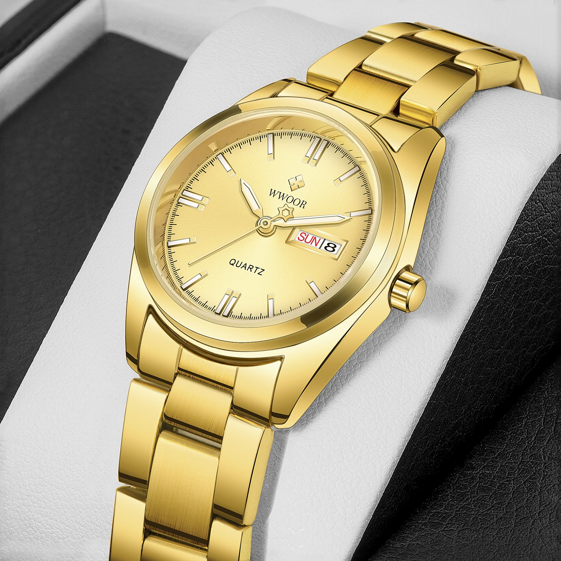 WWOOR 2021 новые кварцевые мужские часы, роскошные полностью золоты...