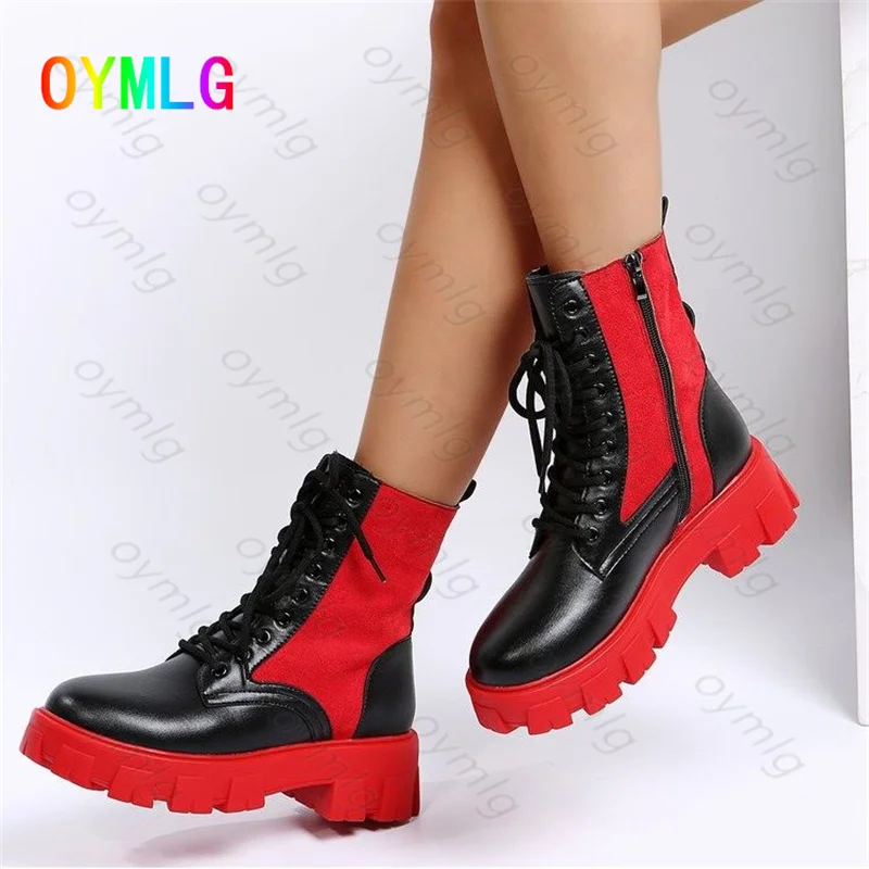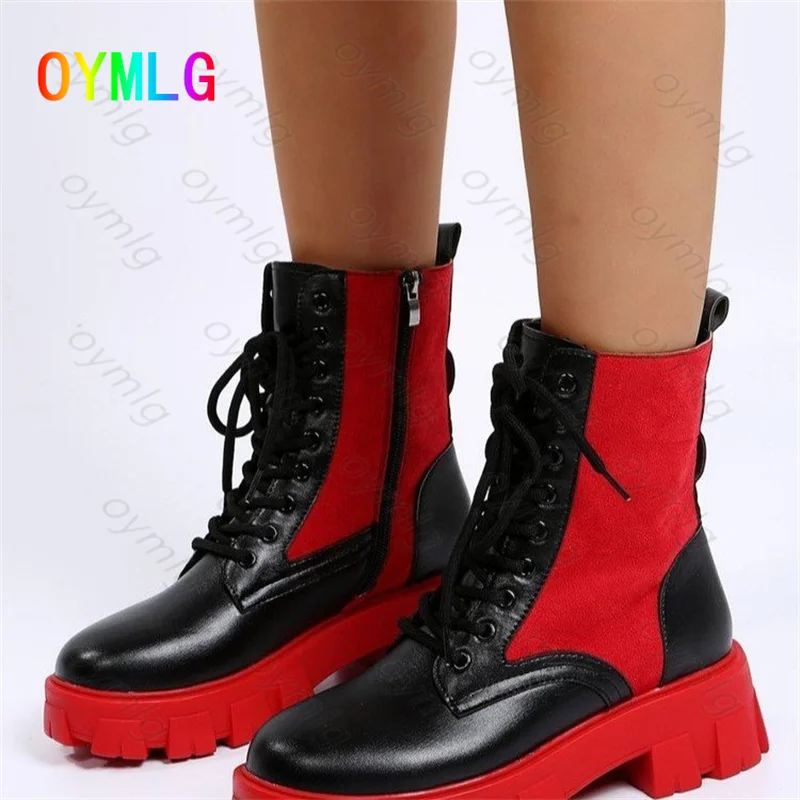 Зимние ботинки; Женская обувь из искусственной кожи на квадратном каблуке с круглым носком; Модные пикантные ботильоны на платформе, визуально увеличивающие рост, на шнуровке и высоком каблуке