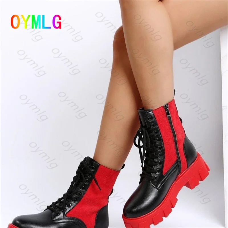 Короткие ботинки на толстом каблуке; Новинка 2021 года; Сезон весна; Повседневные тонкие ботинки «Челси» с круглым носком и красной и синей подошвой; Женские зимние ботинки