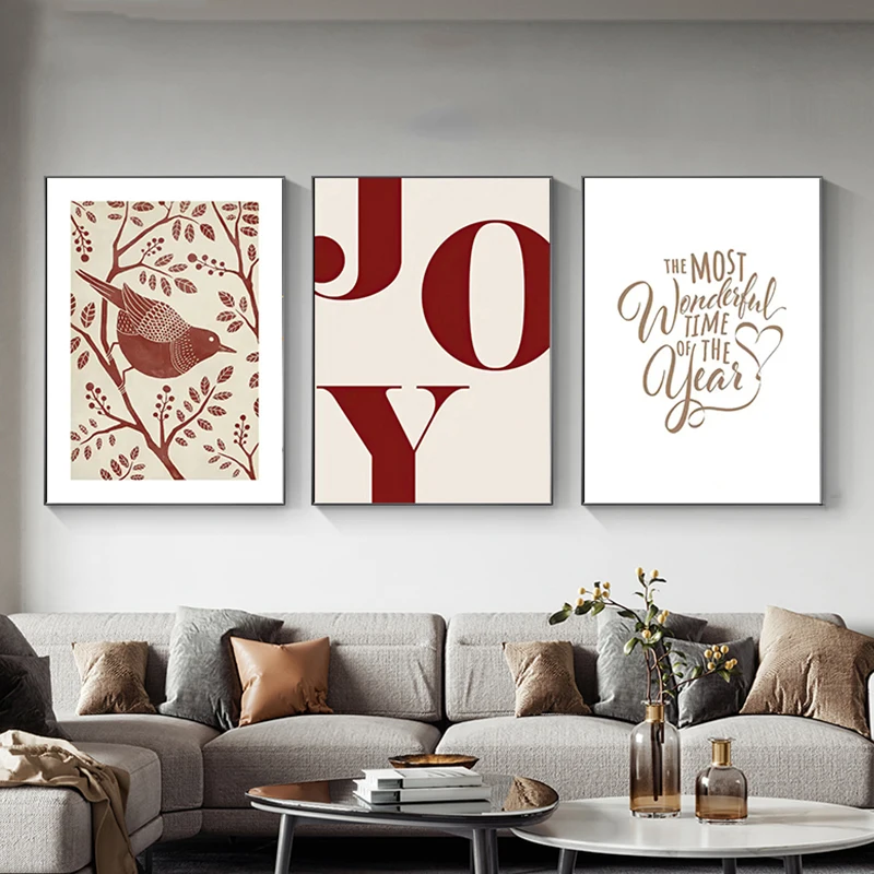 Рождественская тема Милая птица растения настенная Картина на холсте скандинавские плакаты и принты картины для гостиной домашний декор