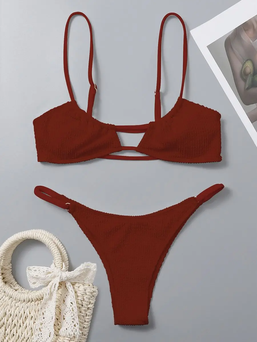 Бандажные бикини 2022, сексуальный женский купальник, однотонный ку...
