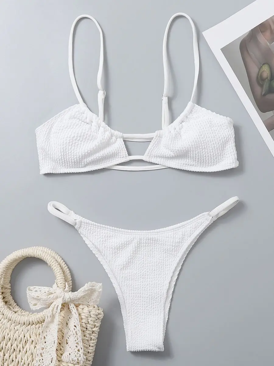Сексуальное Плиссированное бикини 2021, Женский однотонный белый ку...