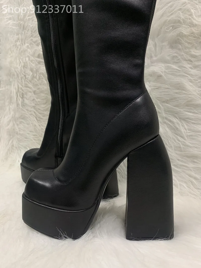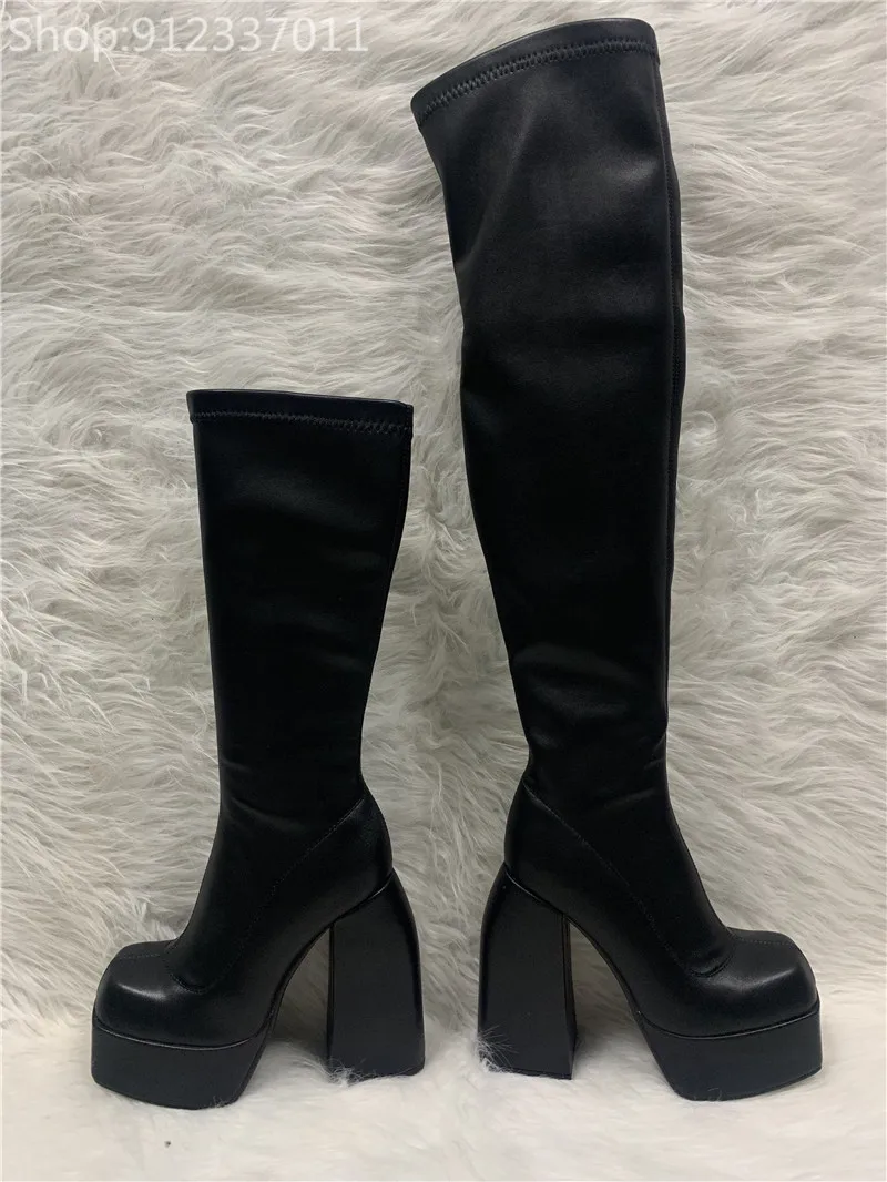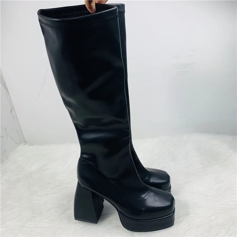 Женские ботинки на платформе в стиле панк, черные эластичные длинные кожаные сапоги на высоком каблуке, женские высокие сапоги на толстой подошве