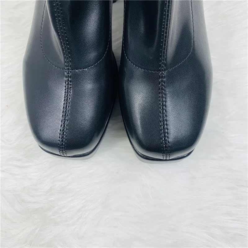 Женские эластичные сапоги выше колена, черные высокие сапоги на пла...
