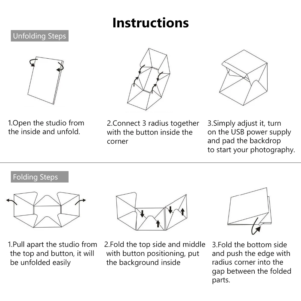 Собрать свою собственную фотостудию в любом месте за считанные минуты, вы можете развернуть этот светодиодный лайтбокс и разместить его на любой поверхности, чтобы получить идеальный фон для небольших предметов деловой фотографии, фотографирования для продуктов.