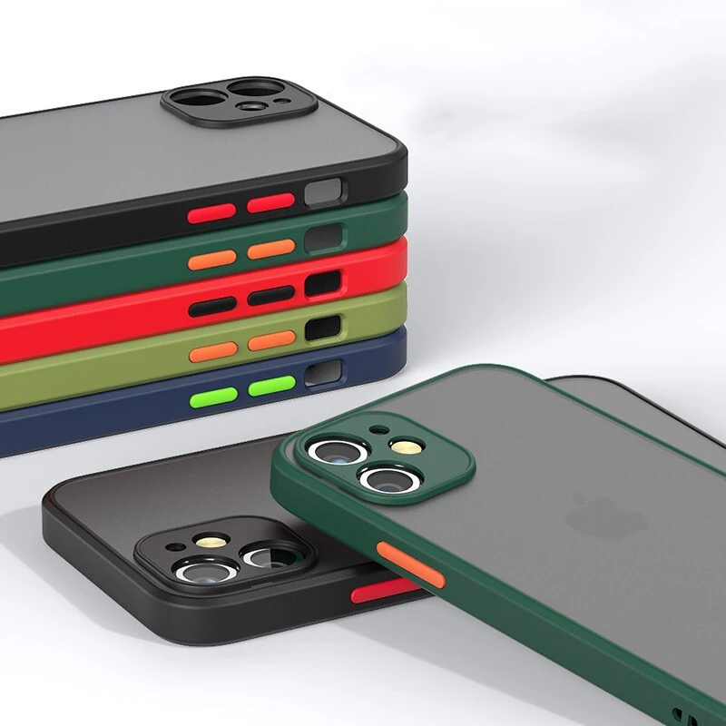 Противоударный бронированный Матовый Прозрачный чехол для телефона iPhone 11 12 13 Pro Max Mini X XR XS 7 8 6S Plus SE 2, защитный бампер для камеры