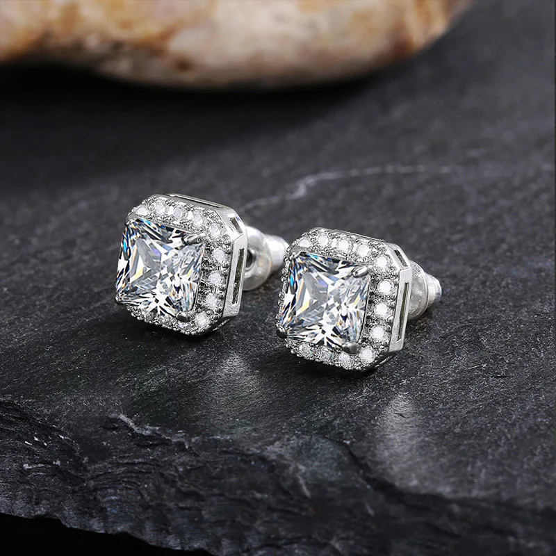 Серьги-гвоздики женские, квадратные, с изумрудным кристаллом, из се...