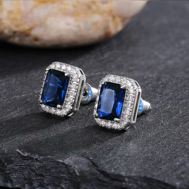 Женские квадратные серьги, циркониевые серьги зеленого, синего и бе...