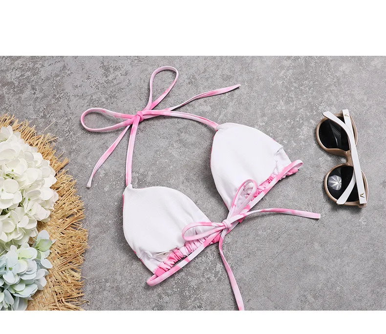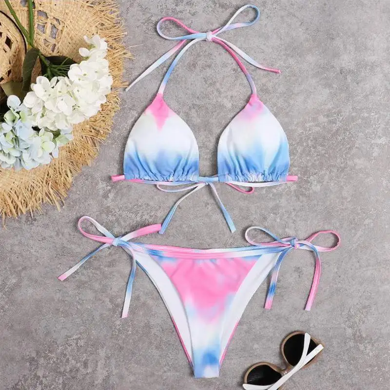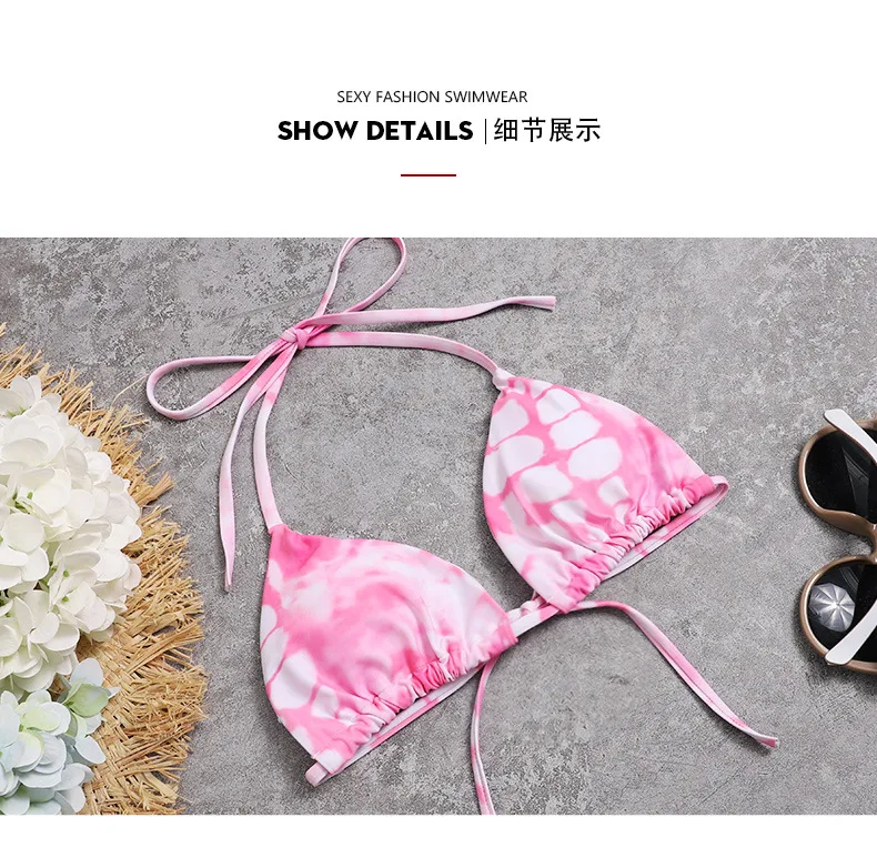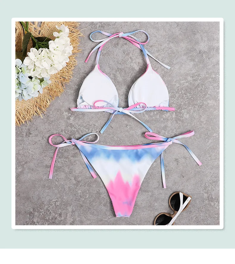 Пикантный Женский комплект бикини на завязках с принтом, пляжный купальный костюм, летние бюстгальтеры с подкладкой + трусики для плавания, бикини, пикантный женский купальный костюм
