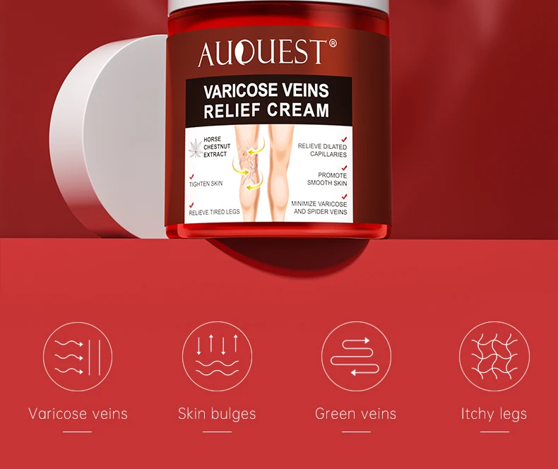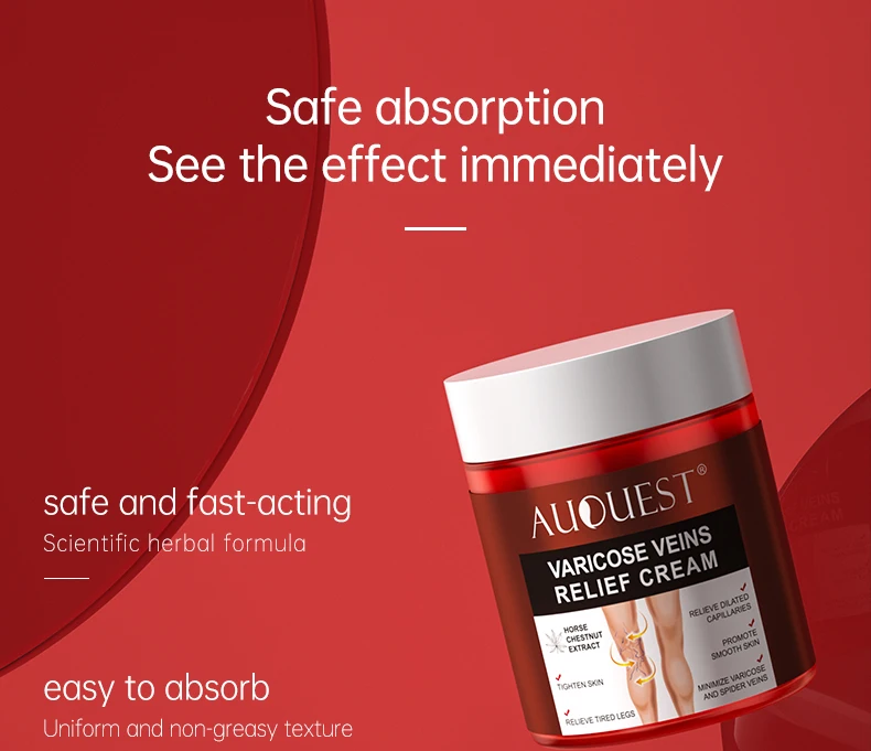 Крем для лечения варикозного расширения вен AUQUEST, облегчает усталость ног, раскрывает васкулит, флебит, паук, средство по уходу за телом 80 г