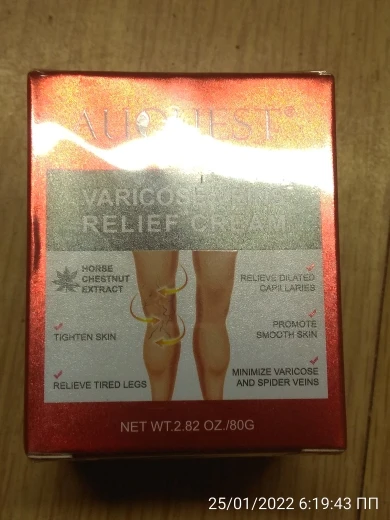 Крем доставлен быстро. Консистенции лёгкая, типа геля. Наносится легко, быстро втирается в тело. Жирного слоя нет. Пользуюсь уже 2 недели, пока результата нет, хотя варикоз 1 степени. В общем, не понятно будет польза или нет.