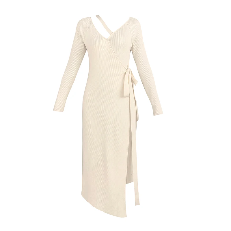 Женское трикотажное платье с длинным рукавом, облегающее платье с длинным рукавом, со шнуровкой, в стиле ретро, для осени и зимы, 2021