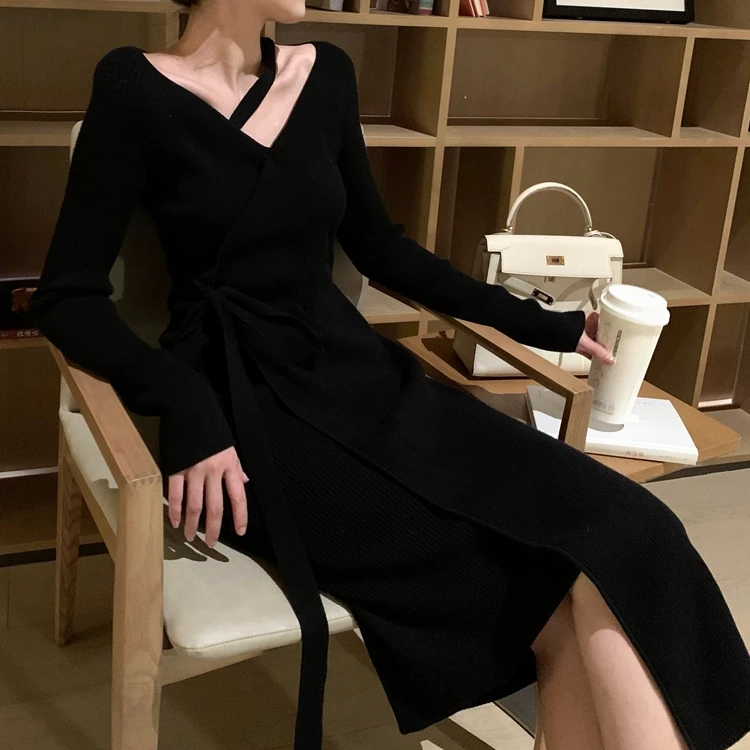 Женское трикотажное платье во французском стиле, Элегантное Длинное...