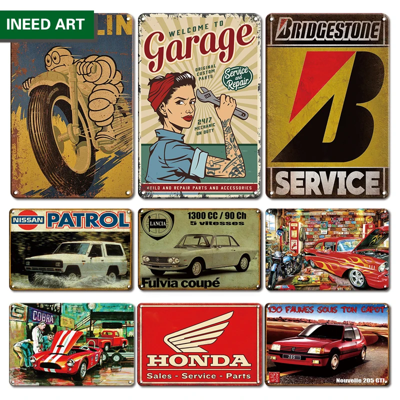 Винтажный настенный постер гаража, металлическая жестяная вывеска, ...