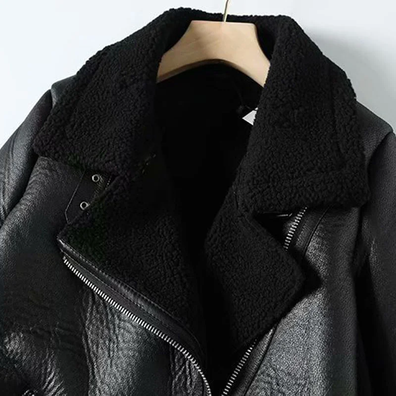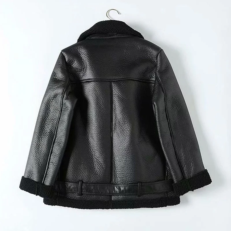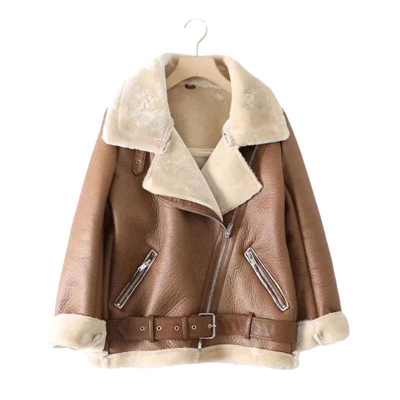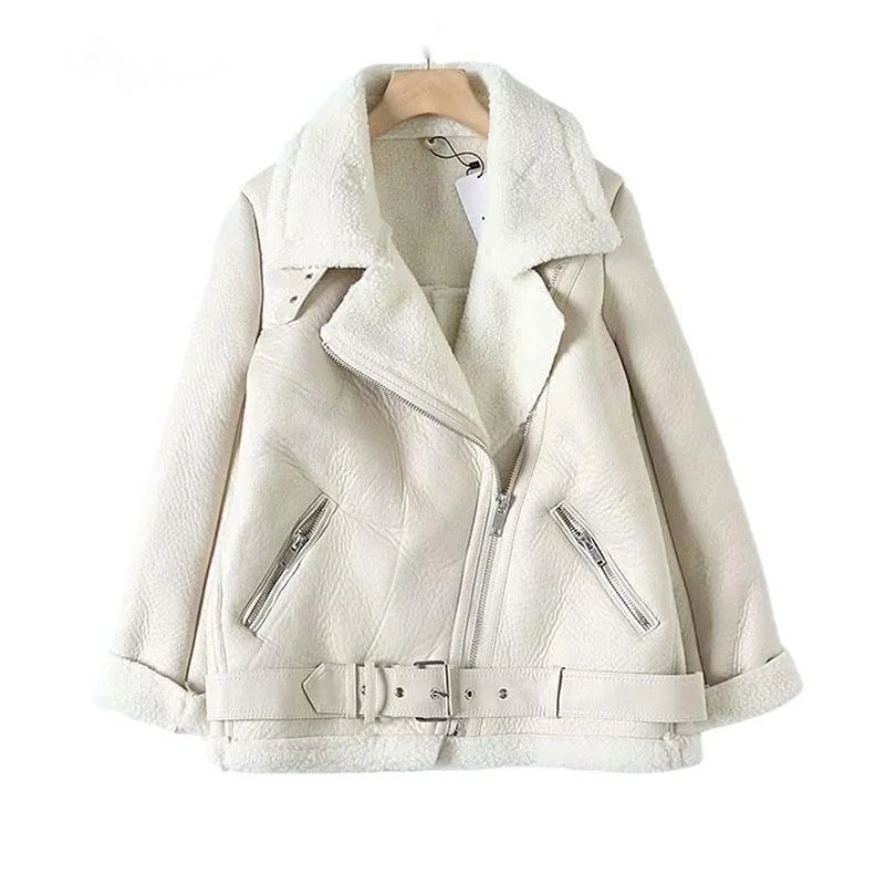 Женская меховая куртка Za, теплая куртка из искусственной кожи оверсайз с длинным рукавом и поясом, утепленная локомотивная бежевая кожаная куртка, 2021