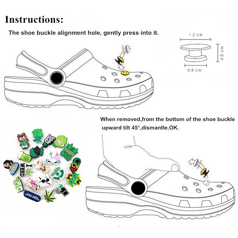 Новинка, дизайнерские симпатичные Тапочки с мультяшными листьями и отверстиями, подвески для обуви, Детские иконы, пряжки для вечерние, подарки, аксессуары из ПВХ, украшение для обуви