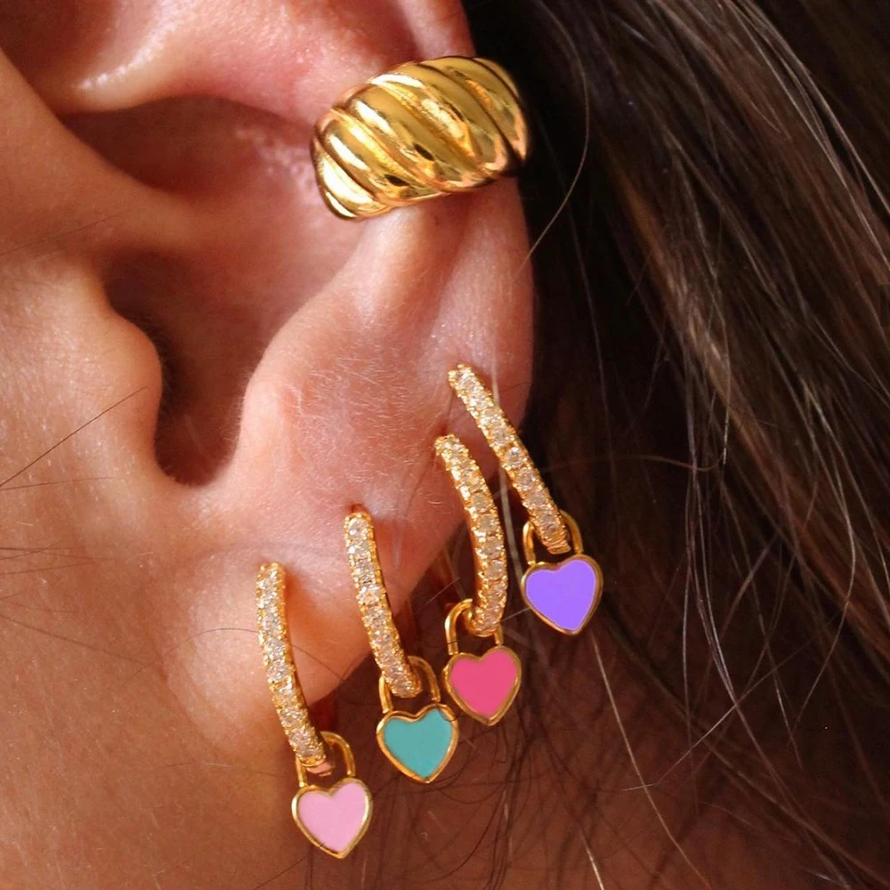 Медные золотистые серьги-кольца Huggie, для женщин, эмалевые, в фор...