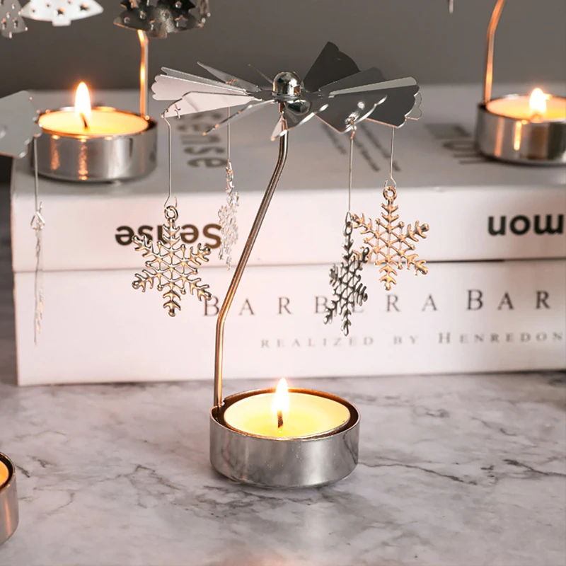 2022 рождественские вращающиеся подсвечники, романтический вращающийся карусель, чайный светильник, Рождественский подсвечник, Декор для дома, рождественские подарки