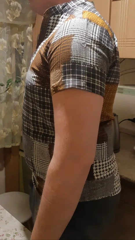 Посылка шла менее 3 недель. Размер соответствует таблице. Цвет рубашки фактически темнее, чем на фото. Но в общем, неплохая рубашка для лета.
