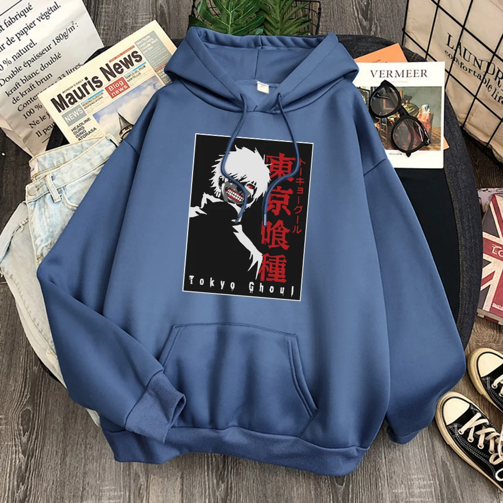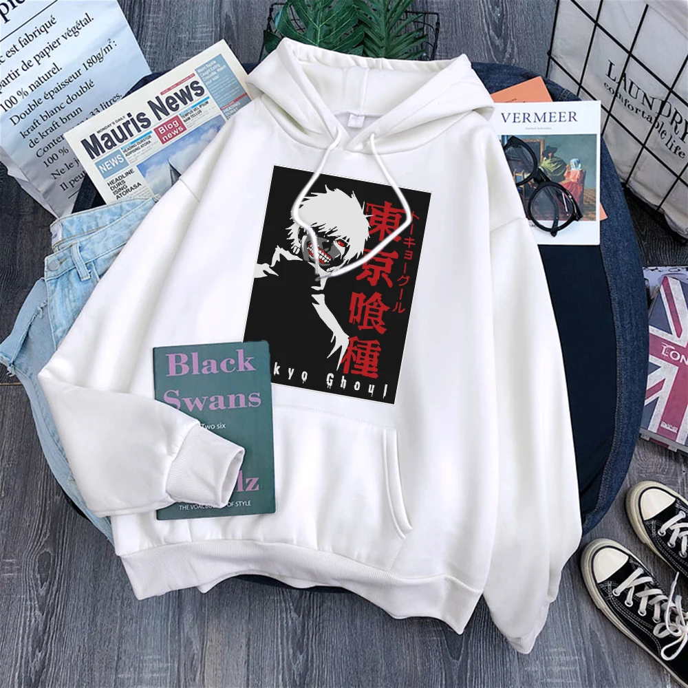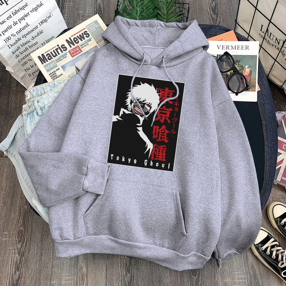 Толстовка мужская оверсайз с капюшоном, худи с аниме Токийский Гуль, с принтом, в стиле хип-хоп, флисовый свитшот с круглым вырезом в стиле Харадзюку, уличная одежда унисекс