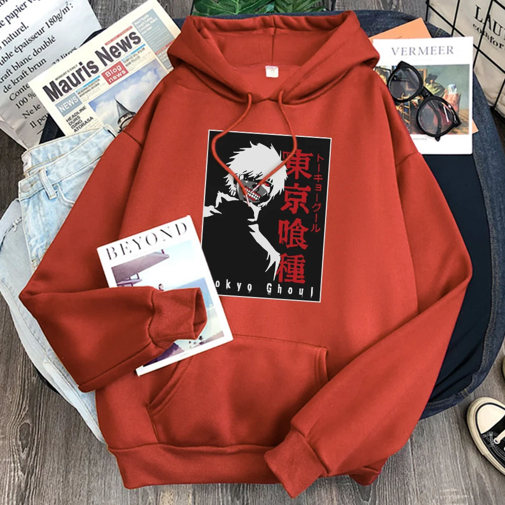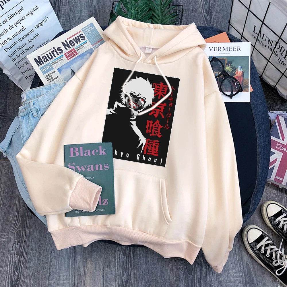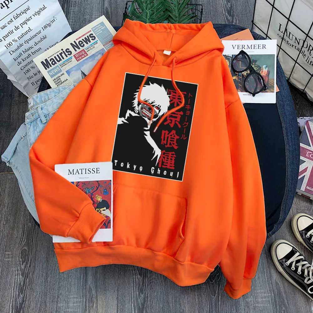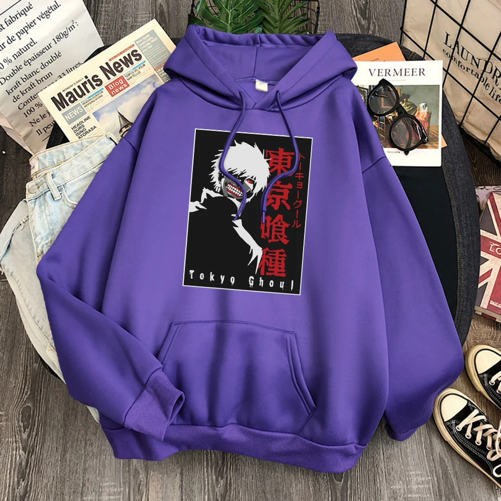 Толстовка мужская оверсайз с капюшоном, худи с аниме Токийский Гуль, с принтом, в стиле хип-хоп, флисовый свитшот с круглым вырезом в стиле Харадзюку, уличная одежда унисекс